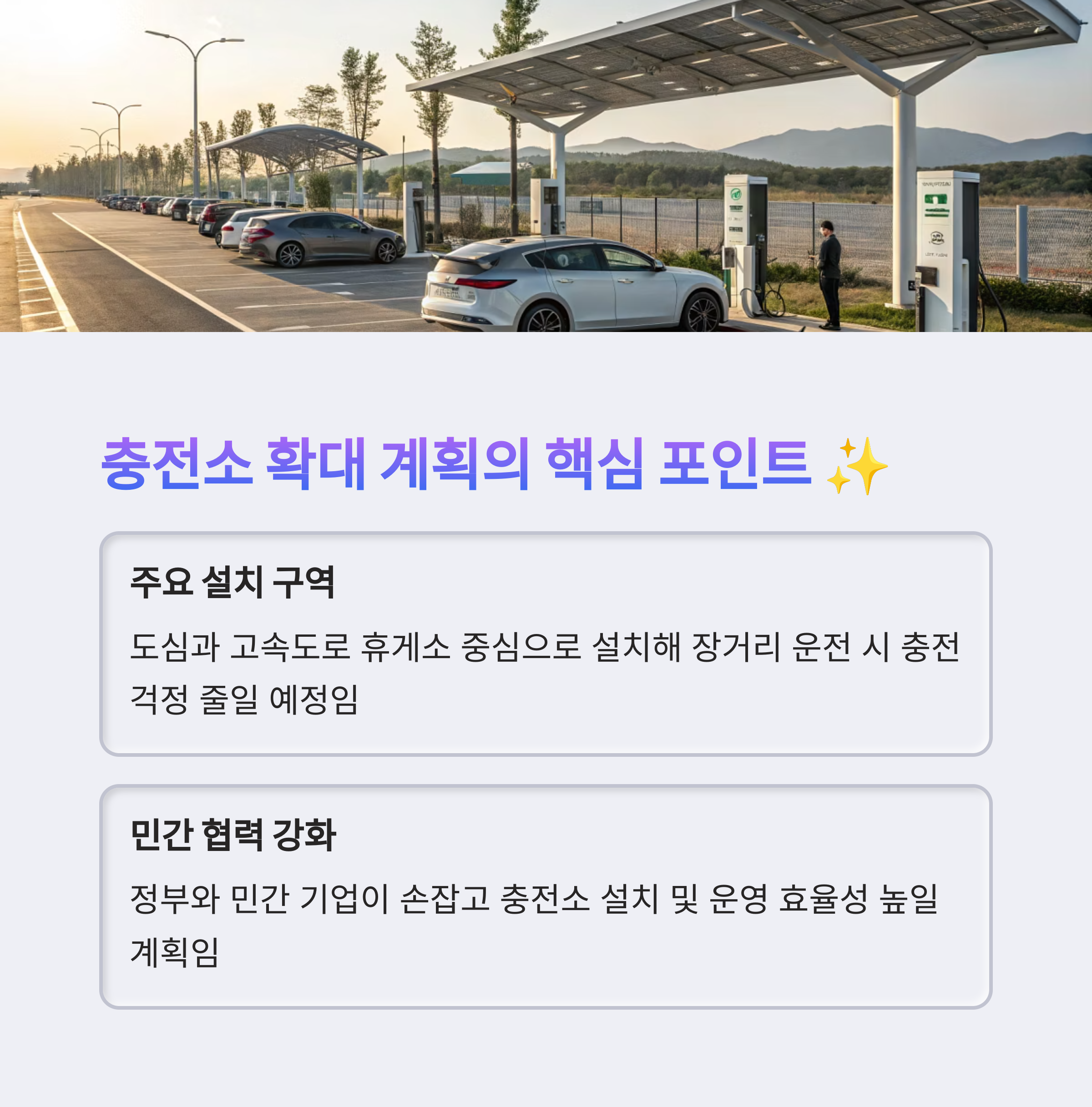 - 전략적 설치: 주요 도심 및 고속도로 중심의 충전소 확대.
