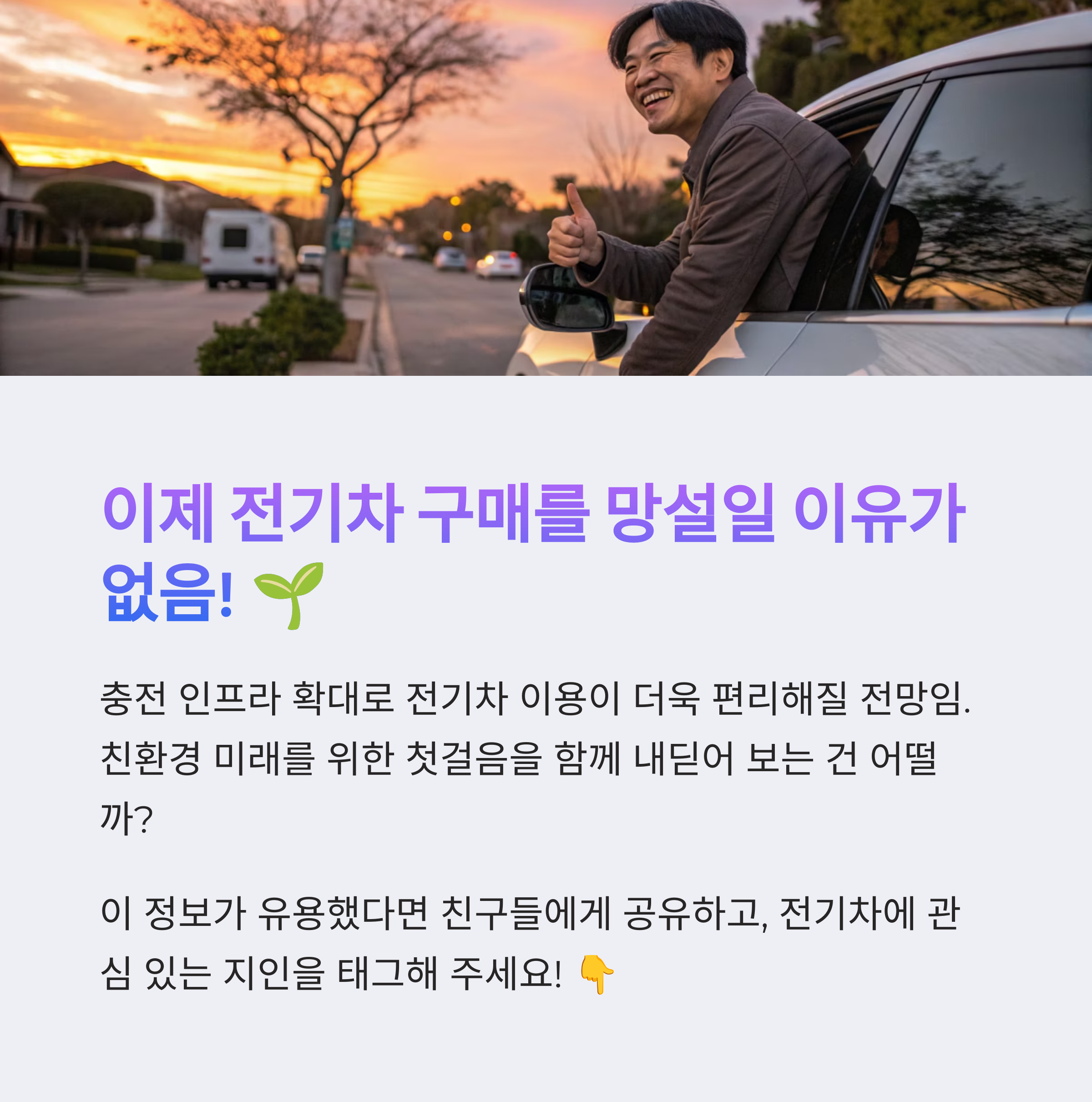 정부의 적극적인 투자와 민간의 협력으로 전기차 충전 인프라가 빠르게 확충되고 있다는 소식, 정말 반갑지 않으세요? 👏 이제 충전 걱정 없이 전기차를 구매하고, 더 편리하게 이용할 수 있는 날이 머지않은 것 같아요. 저도 다음 차는 꼭 전기차로! 😉 여러분도 전기차에 대해 더 궁금한 점이 있다면 언제든지 댓글로 물어봐 주세요~
