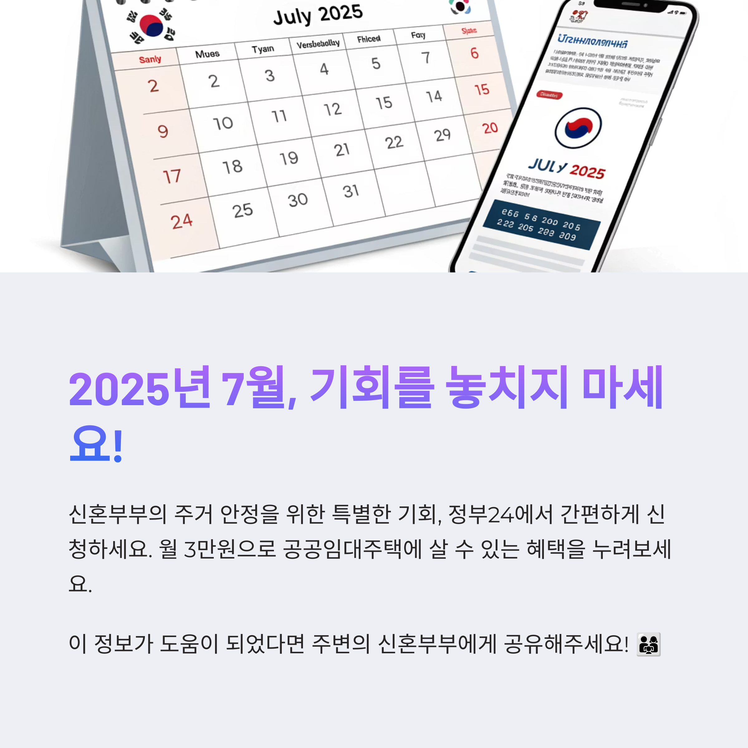 2025년 상반기 이후, 해당 사업을 통해 신혼부부는 공공임대주택에 거주할 경우 월 임대료 중 3만 원만 부담하게 됩니다.