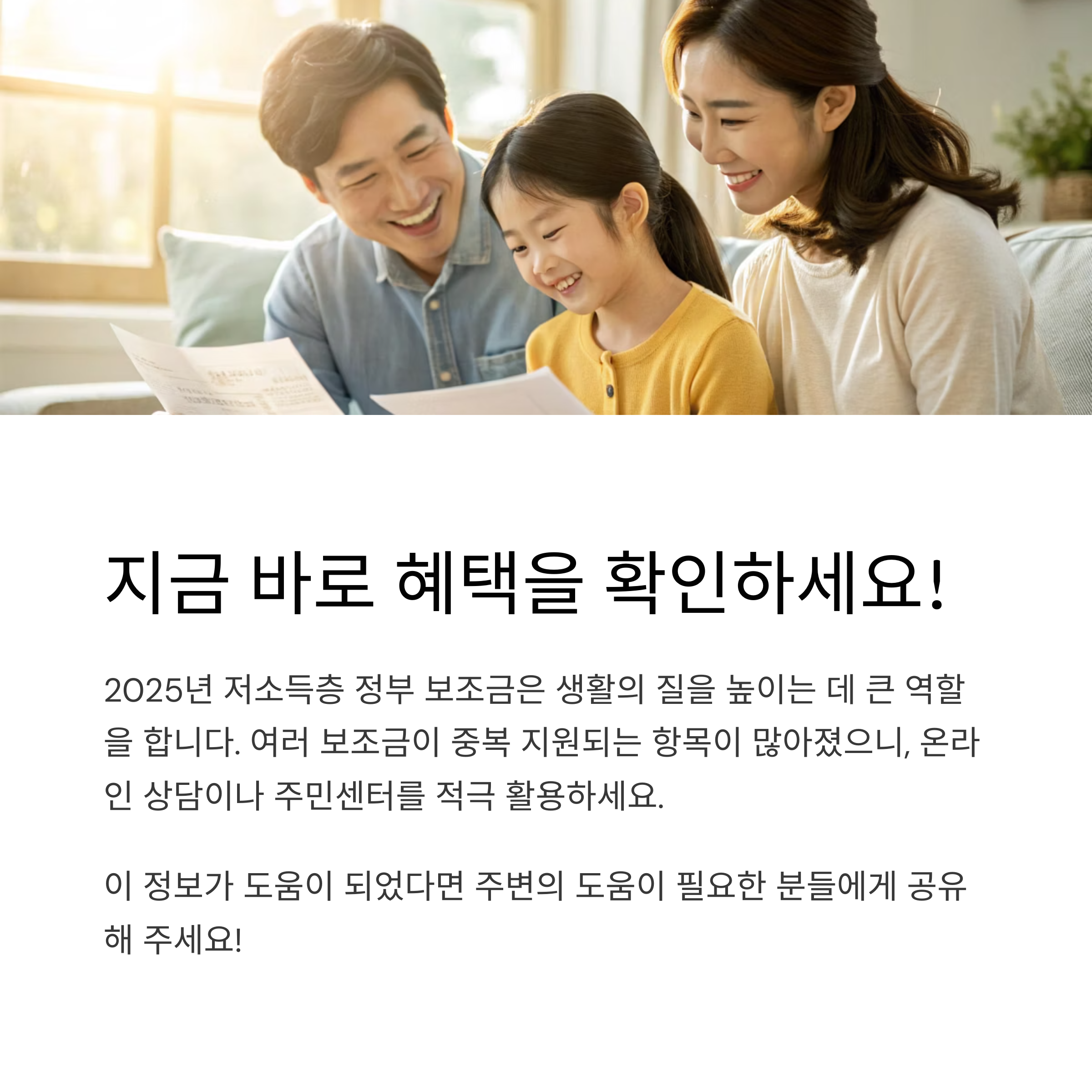 이번 글에서는 2025년 가장 강력하게 추천할 만한 저소득층 지원 보조금의 종류와 실제 신청 방법,
