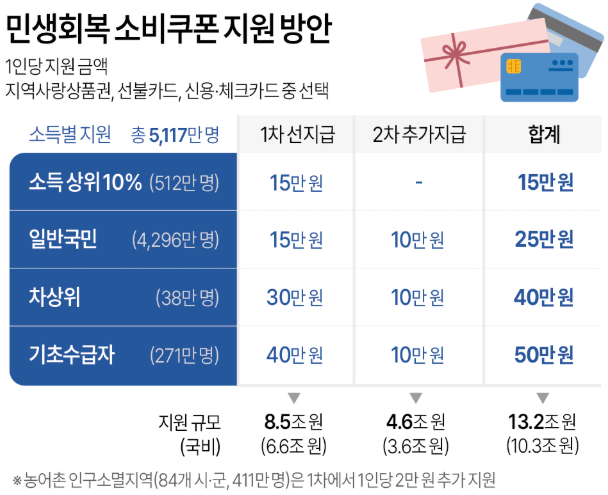 - 대상: 전 국민 대상 (소득 및 지역에 따라 차등 지급).